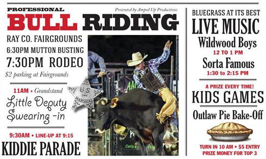 The festival also includes kid and adult old fashioned games, Ag Power Tractor Show, Hard Time Rodder's Car Show, Missouri Army National Guard Military Display, food and craft vendors, Kiddie Parade, Kid Outlaw Round-Up and a Grandstand Stage featuring entertainment all day! Back this year is Professional Bull Riding starting at 7 pm at the Ray County Fair Grounds! We have a jumping mule as well as square dancers, plus much, much more! Make sure to bring the whole family to downtown Richmond, MO on Saturday, September 8th, 2018 from 8 am-5 pm!