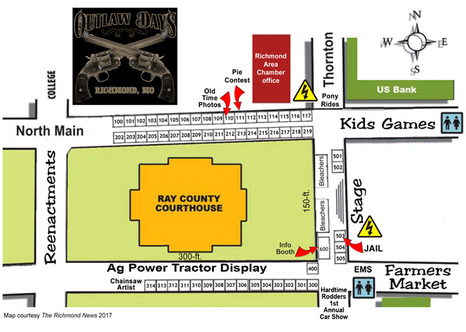 The Richmond Downtown District is proud to host the 7th Annual Outlaw Days September 8th, 2017. Outlaw Days is a Wild West themed fall festival with something for everyone. The festival features a robbery reenactment of an actual bank robbery that took place in 1867, attributed to the James-Younger Gang, on the square in Richmond, as well as a NEW reenactment this year -- The Last Battle of the Civil War -- which occurred 2 years before the robbery just 8 miles out of town.